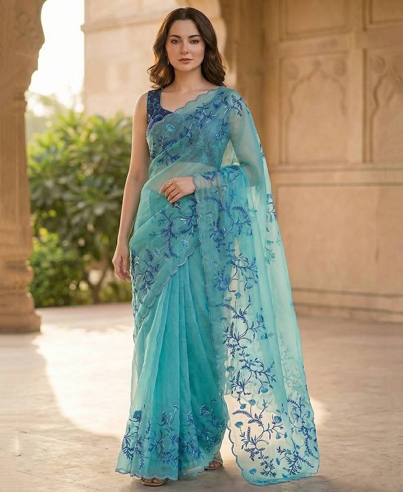 • Border : Embroidered Border • Color : Sky Blue • Fabric Of : Silk Blend • Color : Sky Blue Blouse Details