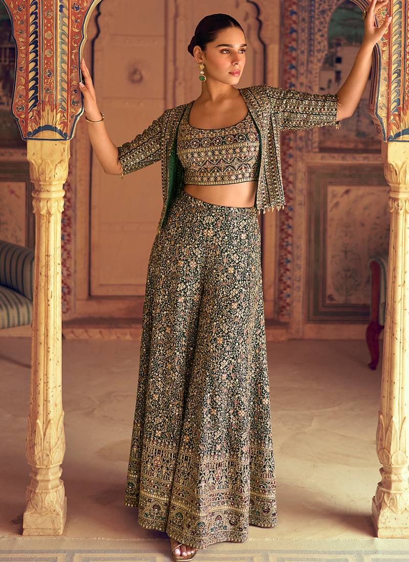 • Fabric : Georgette • Color : Green • Style : Palazzo • Color : Green Dupatta Details