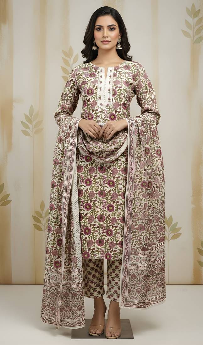 • Product Id : 4701988 • Package Details : 1 Kurta/1 Bottom/1 Dupatta • Type : Kurta Sets • Fabric : Cotton • Work : Printed • Type : Resham Embroidery • Look : Designer • Sleeve : Half Sleeve • Neck Style : Asymmetrical Neck Kameez • Color : Beige • Stitching : Stitched • Length : 40.0 • Side Slit : Yes Payments [+]