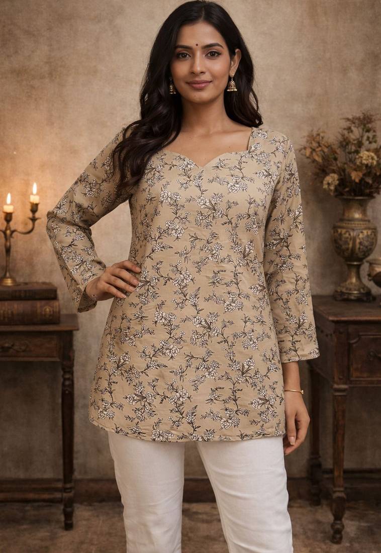 • Product Id : 4718163 • Package Details : 1 Kurta • Type : Short Kurtis • Occasion : Casual • Fabric : Art Silk • Work : Printed • Type : Abstract Print • Look : Designer • Sleeve : Half Sleeve • Neck Style : Asymmetrical Neck Kameez • Color : Beige • Stitching : Stitched • Length : 30.0 • Side Slit : Yes Payments [+]