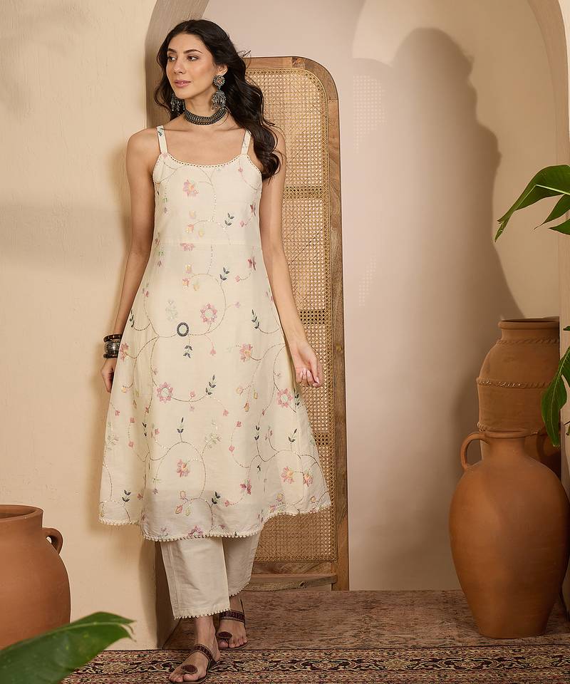 • Product Id : 4683737 • Package Details : 1 Kurta/1 Bottom • Type : Kurta Sets • Work : Embroidered • Type : Resham Embroidery • Look : Designer • Sleeve : Sleeveless • Neck Style : Asymmetrical Neck Kameez • Color : Beige • Fabric : Blended Cotton • Stitching : Stitched • Length : 38.0 Payments [+]