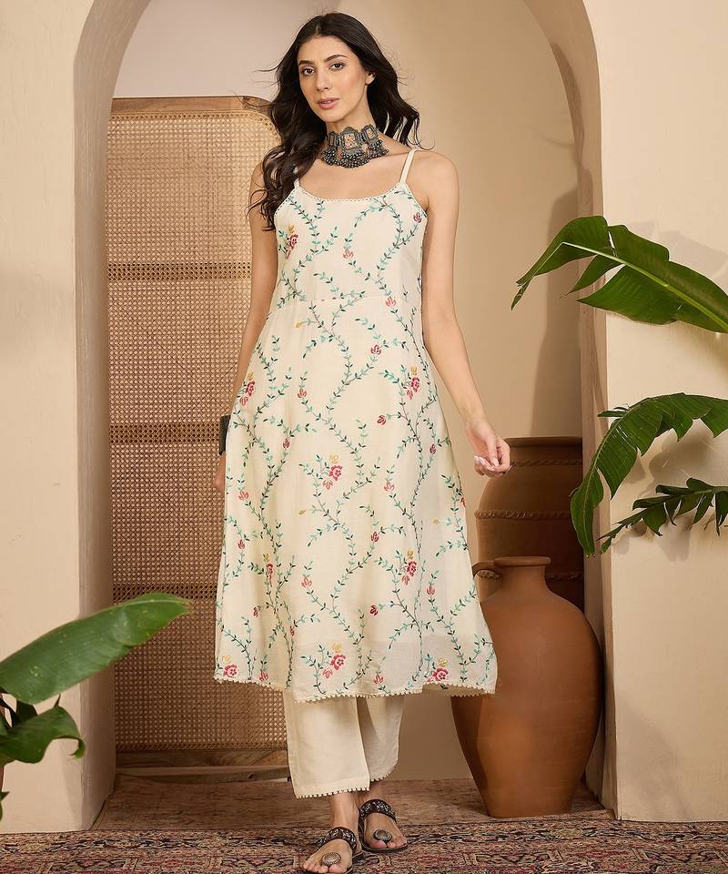 • Product Id : 4683735 • Package Details : 1 Kurta/1 Bottom • Type : Kurta Sets • Work : Embroidered • Type : Resham Embroidery • Look : Designer • Sleeve : Sleeveless • Neck Style : Asymmetrical Neck Kameez • Color : Beige • Fabric : Blended Cotton • Stitching : Stitched • Length : 38.0 Payments [+]