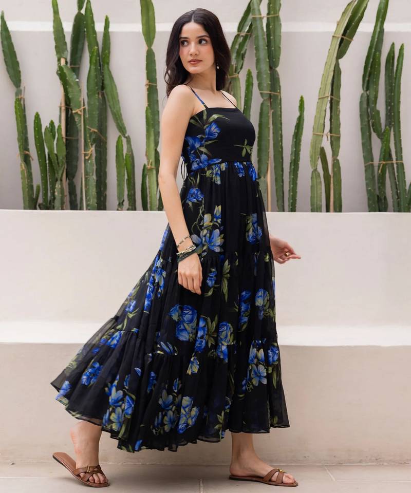 Black Color Georgette Fabric Beautiful Girlie Gown For Stylish College Looks