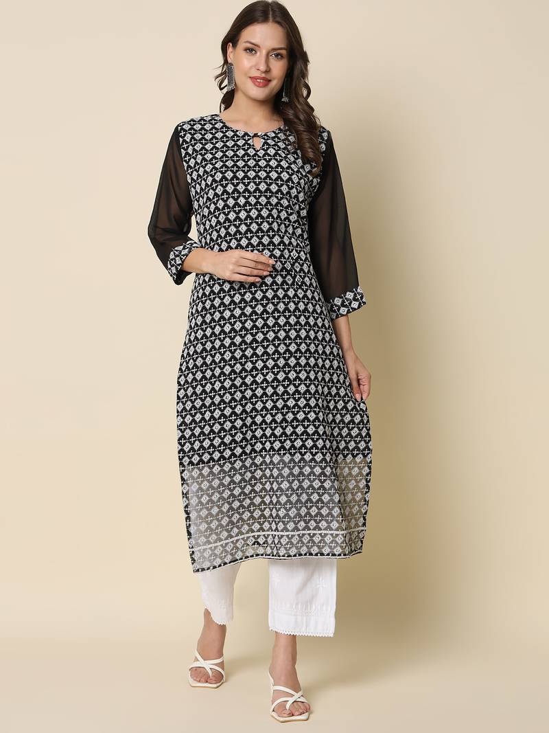 Black Color Georgette Fabric Chikankari Work Formal Kurta For Girls