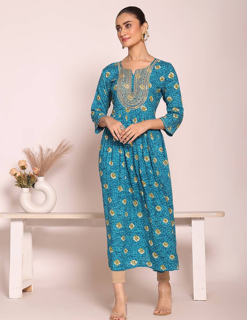 • Product Id : 4718175 • Package Details : 1 Kurta • Type : Long Kurti Designs • Fabric : Art Silk • Work : Embroidered • Type : Abstract Print • Look : Designer • Sleeve : Half Sleeve • Neck Style : Round Neck • Color : Blue • Stitching : Stitched • Length : 40.0 • Side Slit : Yes Payments [+]