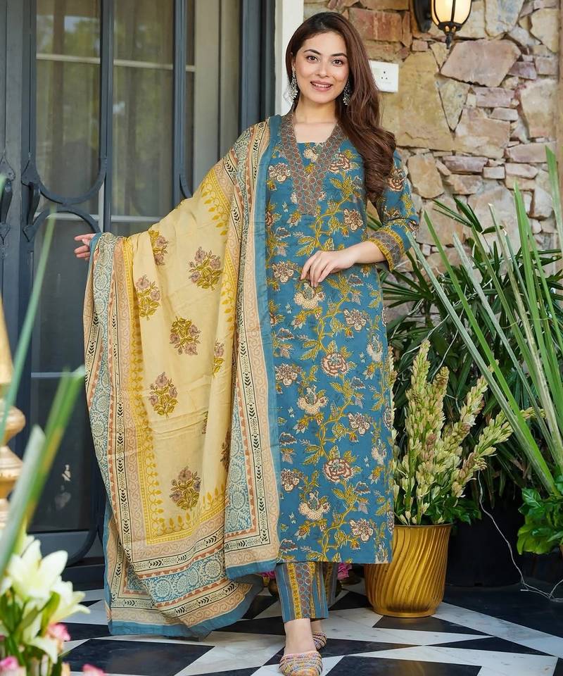 • Product Id : 4674404 • Package Details : 1 Kurta/1 Bottom/1 Dupatta • Type : Plus Size Kurtis • Occasion : Casual • Fabric : Art Silk • Work : Printed • Type : Abstract Print • Look : Designer • Sleeve : Half Sleeve • Neck Style : Asymmetrical Neck Kameez • Color : Blue • Stitching : Stitched Payments [+]