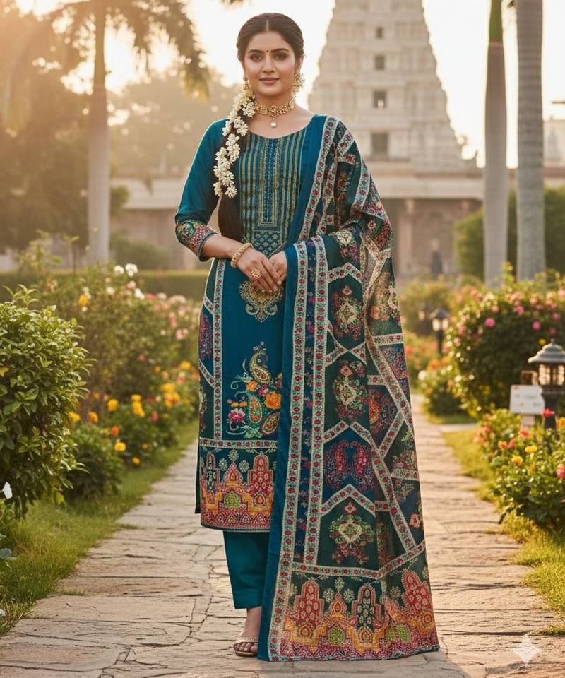 • Style : Salwar • Fabric : Santoon • Color : Blue • Color : Blue Dupatta Details