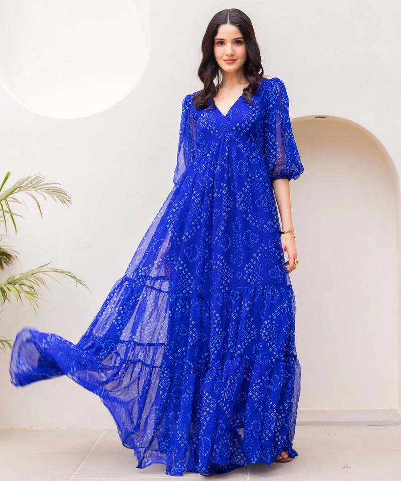 Blue Color Georgette Fabric Beautiful Girlie Gown For Stylish College Looks