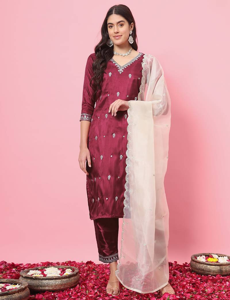 Looking These Beautiful Readymade Suits With Dupatta.These Suit is Fabricated On Top Are Silk Blend And Bottom Are Silk Blend And Silk Dupatta .Its Beautified With Designer Embroidery Work.