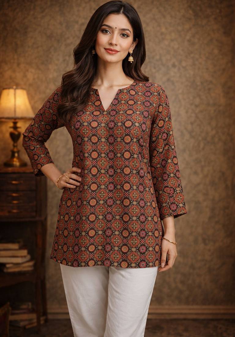 • Product Id : 4718130 • Package Details : 1 Kurta • Type : Short Kurtis • Occasion : Casual • Fabric : Art Silk • Work : Printed • Type : Abstract Print • Look : Contemporary • Sleeve : Half Sleeve • Neck Style : Asymmetrical Neck Kameez • Color : Coffee • Stitching : Stitched • Length : 30.0 • Side Slit : Yes Payments [+]