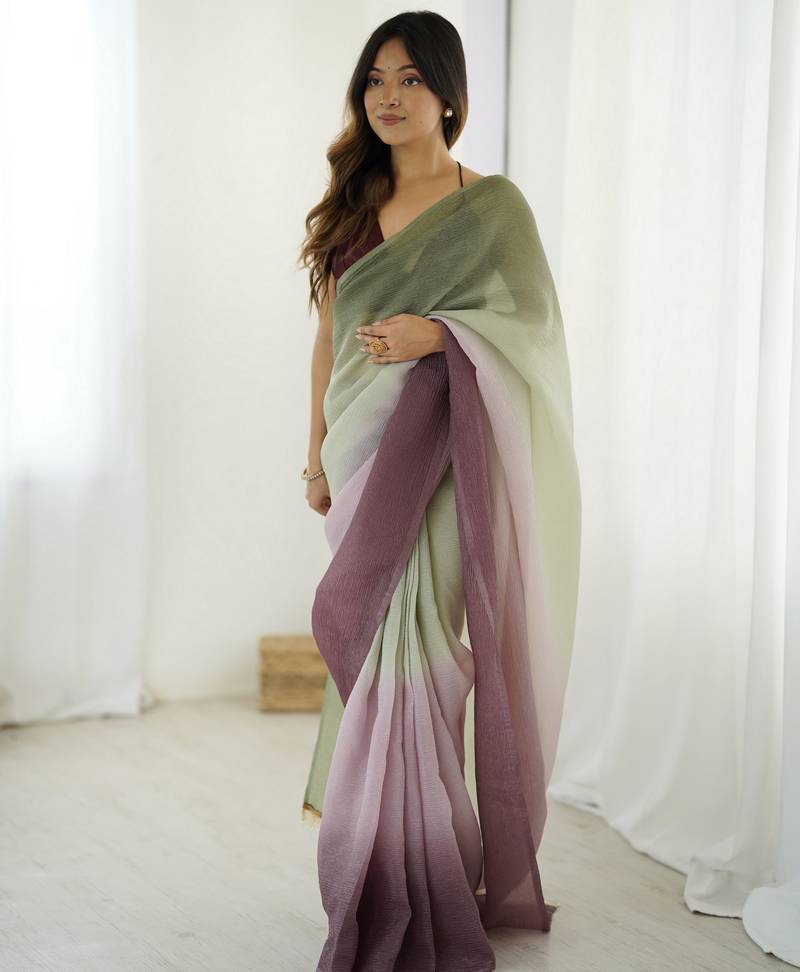 Designer Green Wine Color Candy Crush Silk Fabric Stylish Pre Stitched Saree