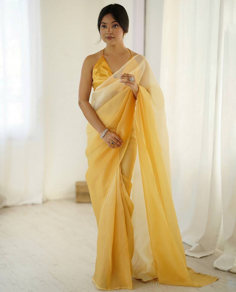 Designer Yellow Color Candy Crush Silk Fabric Stylish Pre Stitched Saree