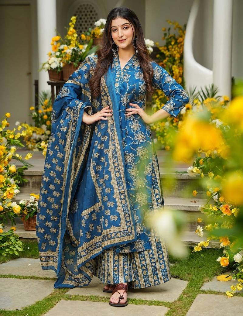 • Product Id : 4674406 • Package Details : 1 Kurta/1 Bottom/1 Dupatta • Type : Plus Size Kurtis • Occasion : Casual • Fabric : Art Silk • Work : Printed • Type : Abstract Print • Look : Designer • Sleeve : Half Sleeve • Neck Style : Asymmetrical Neck Kameez • Color : Blue • Stitching : Stitched Payments [+]