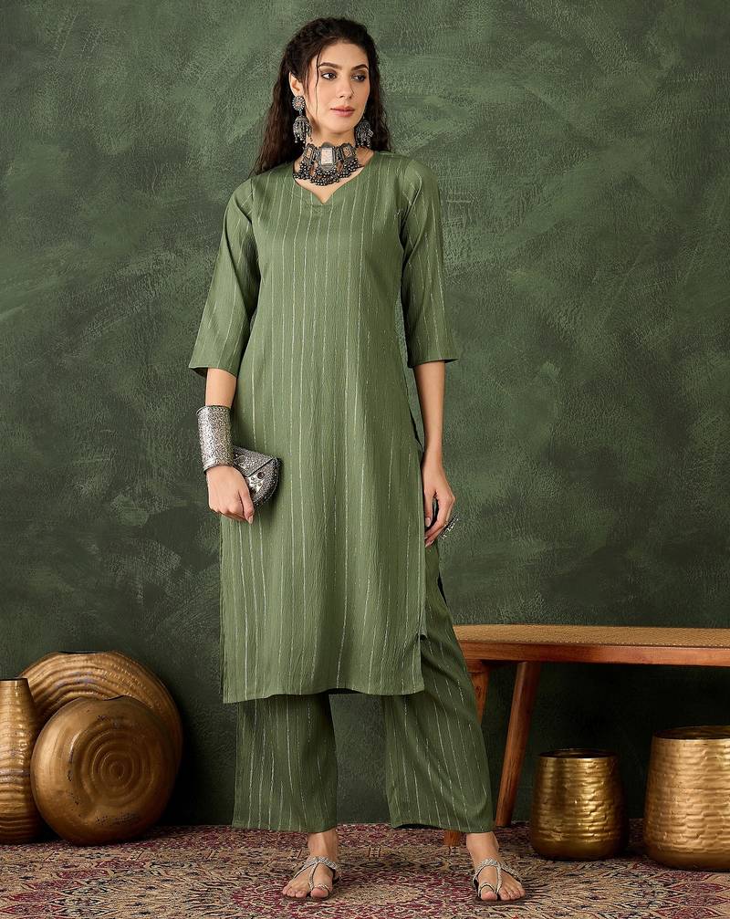 Green Color Cotton Silk Blend Beautiful Stylish Tendy Top Bottom Set