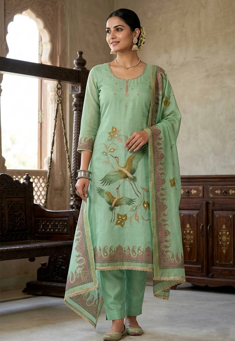 • Style : Salwar • Fabric : Rayon • Color : Green • Color : Green Dupatta Details