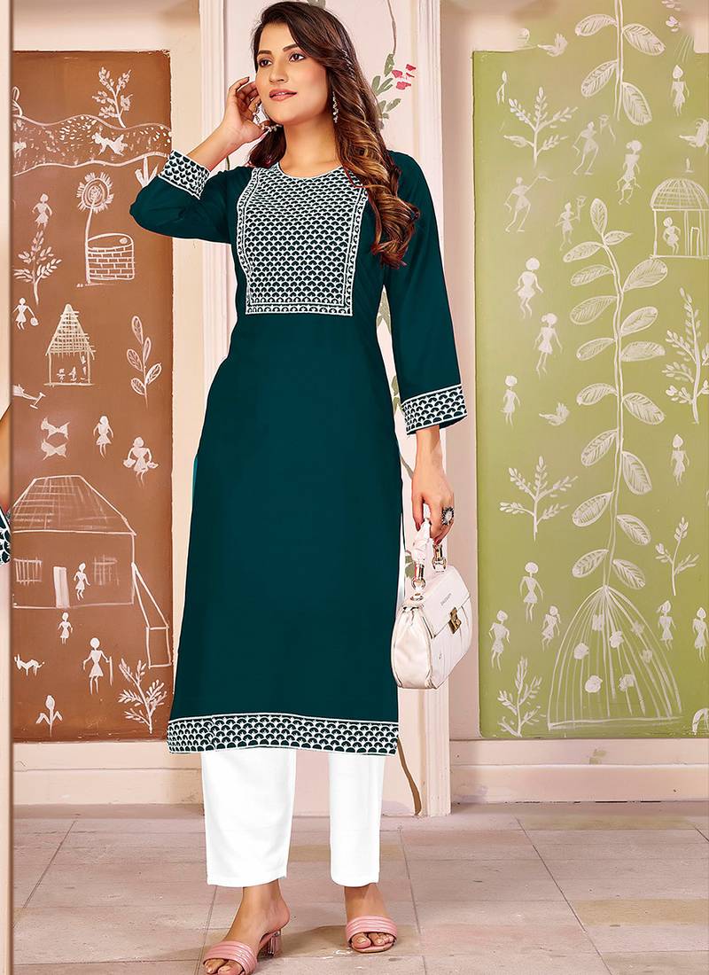 Grab These Beautiful Looking Readymade Kurti With Bottom.These Kurti And Bottom is Fabricated On Rayon.Its Beautified With Designer Embroidery Work.