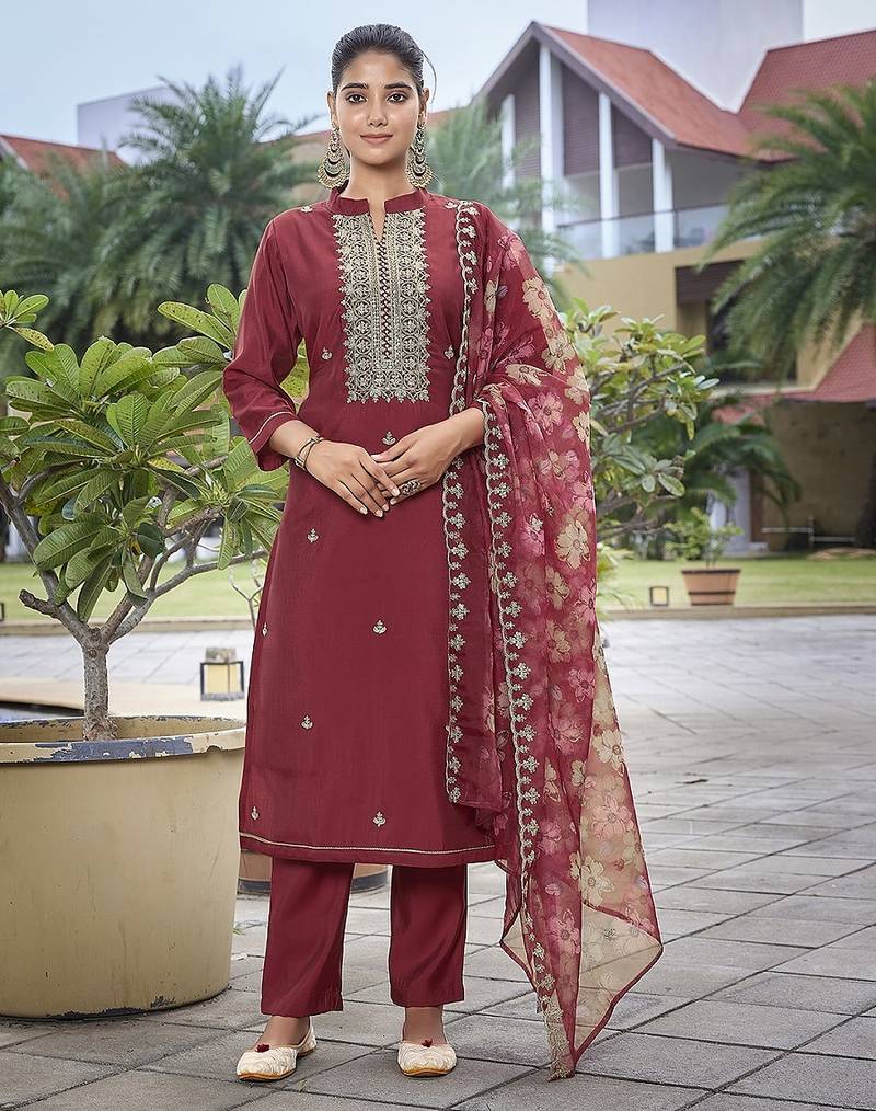 Maroon Color Stylish Partywear Readymade Ethnic Suit
