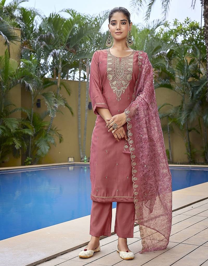 Mauve Pink Color Stylish Partywear Readymade Ethnic Suit