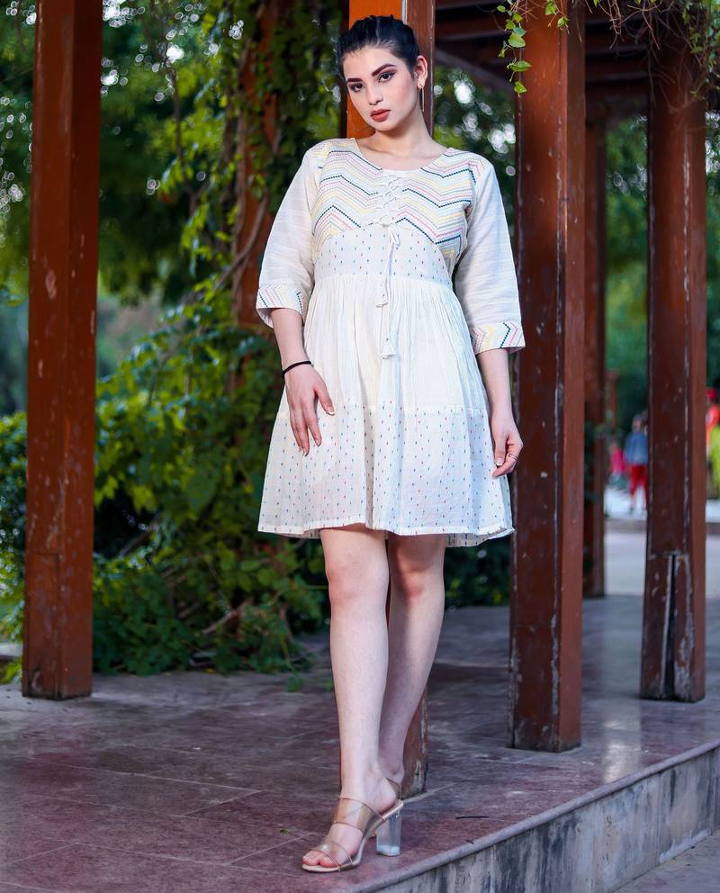 • Product Id : 4718104 • Package Details : 1 Kurta • Type : Short Kurtis • Occasion : Casual • Fabric : Cotton • Work : Embroidered • Type : Abstract Print • Look : Designer • Sleeve : Half Sleeve • Neck Style : Round Neck • Color : Off White • Stitching : Stitched • Length : 35.0 Payments [+]
