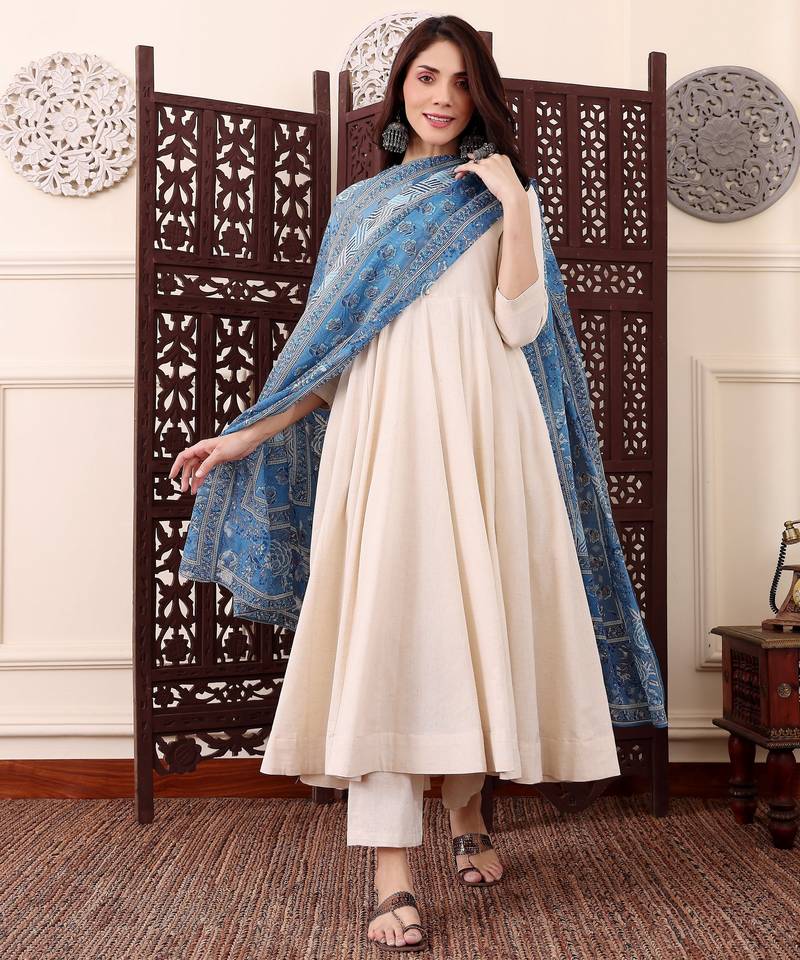 • Product Id : 4718008 • Package Details : 1 Kurta/1 Bottom/1 Dupatta • Type : Kurta Sets • Fabric : Chanderi • Work : Printed • Type : Abstract Print • Look : Designer • Sleeve : Half Sleeve • Neck Style : Asymmetrical Neck Kameez • Color : Off White • Stitching : Stitched • Length : 40.0 • Side Slit : Yes Payments [+]