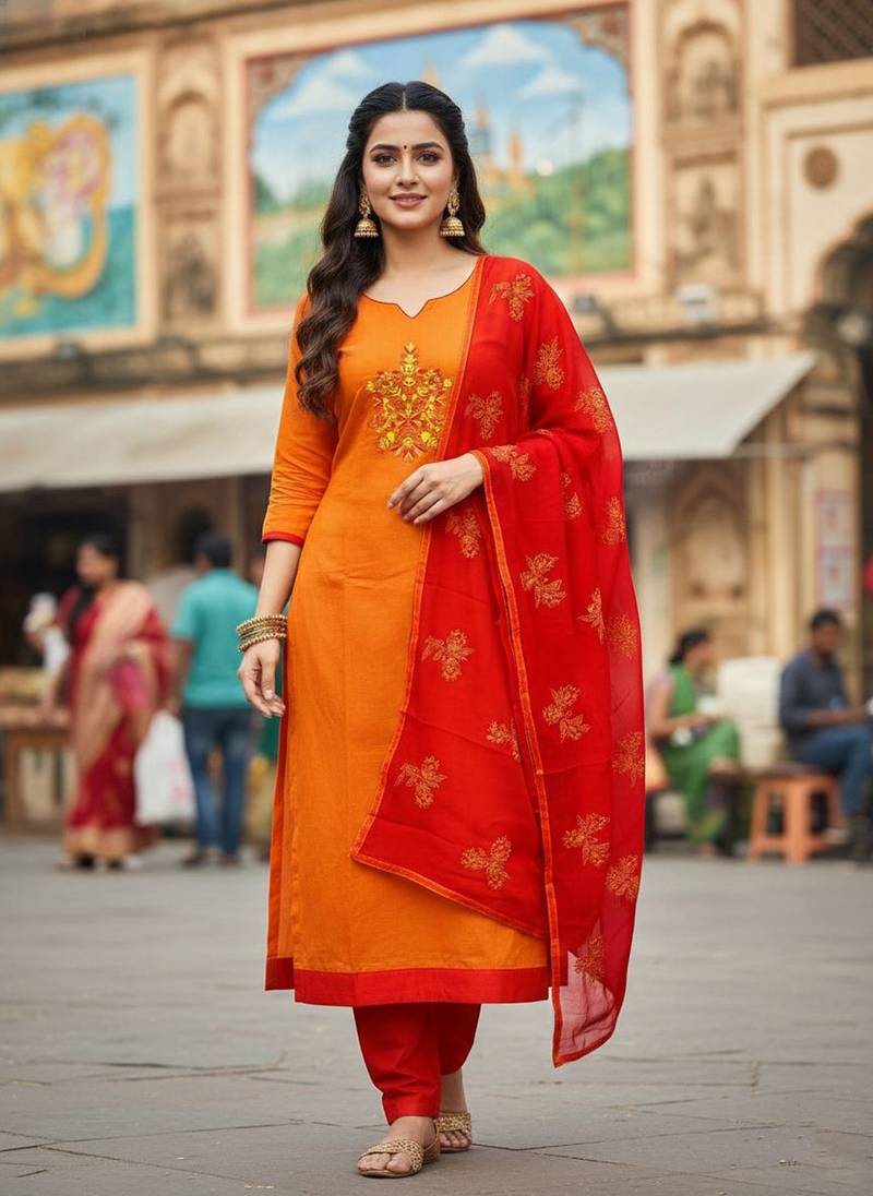 Orange Color Beautiful Formal Looks Ethnic Embroidered Suit Unstitched