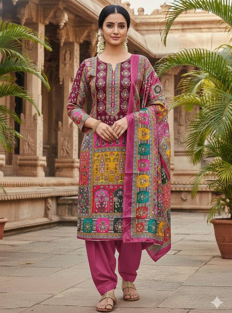 • Style : Salwar • Fabric : Santoon • Color : Pink • Color : Pink Dupatta Details