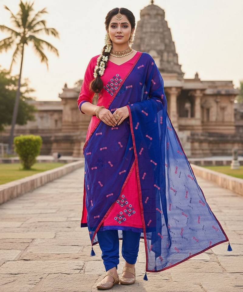 • Style : Salwar • Fabric : Chanderi • Color : Blue • Color : Blue Dupatta Details