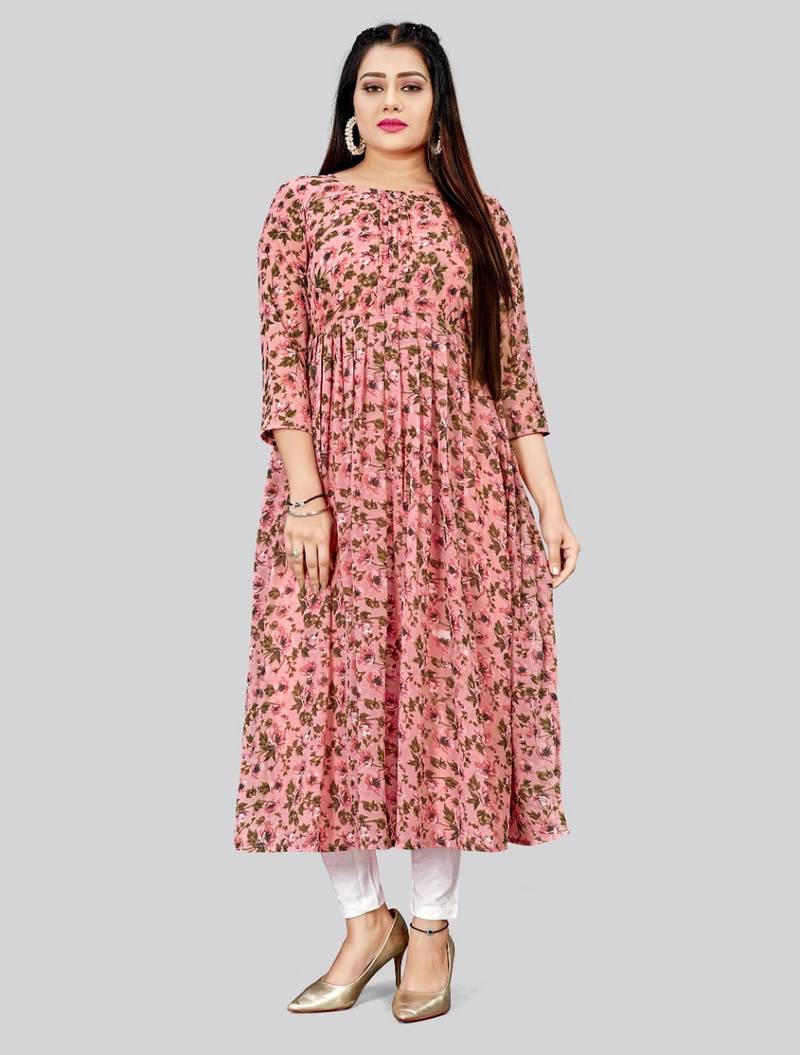 Pink Color Georgette Fabric Readymade Kurti For Ethnic Festive Looks