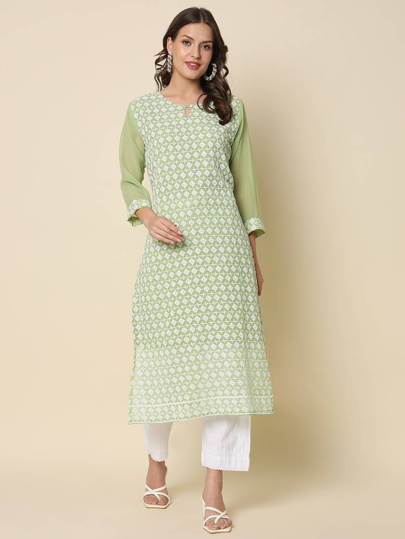 Pista Color Georgette Fabric Chikankari Work Formal Kurta For Girls
