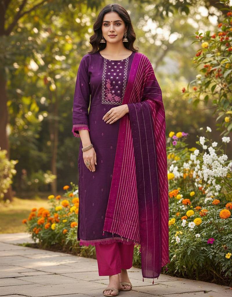 Purple Color Beautiful Formal Looks Ethnic Embroidered Suit Unstitched
