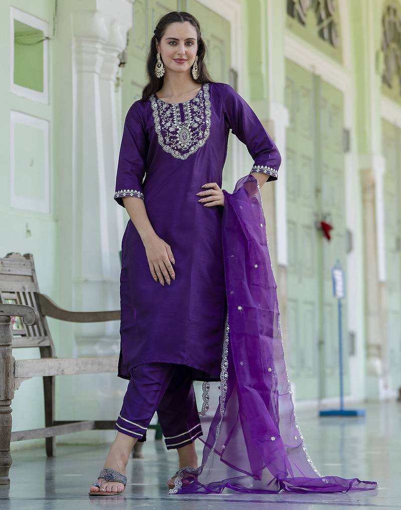 Purple Color Designer Embroidered Silk Blend Ethnic Festive Special Suit