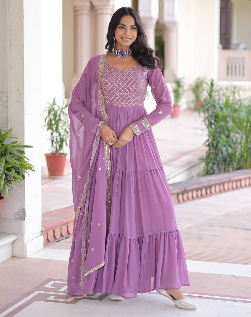 Purple Color Sophisticated Rich Party Looks Gown With Dupatta