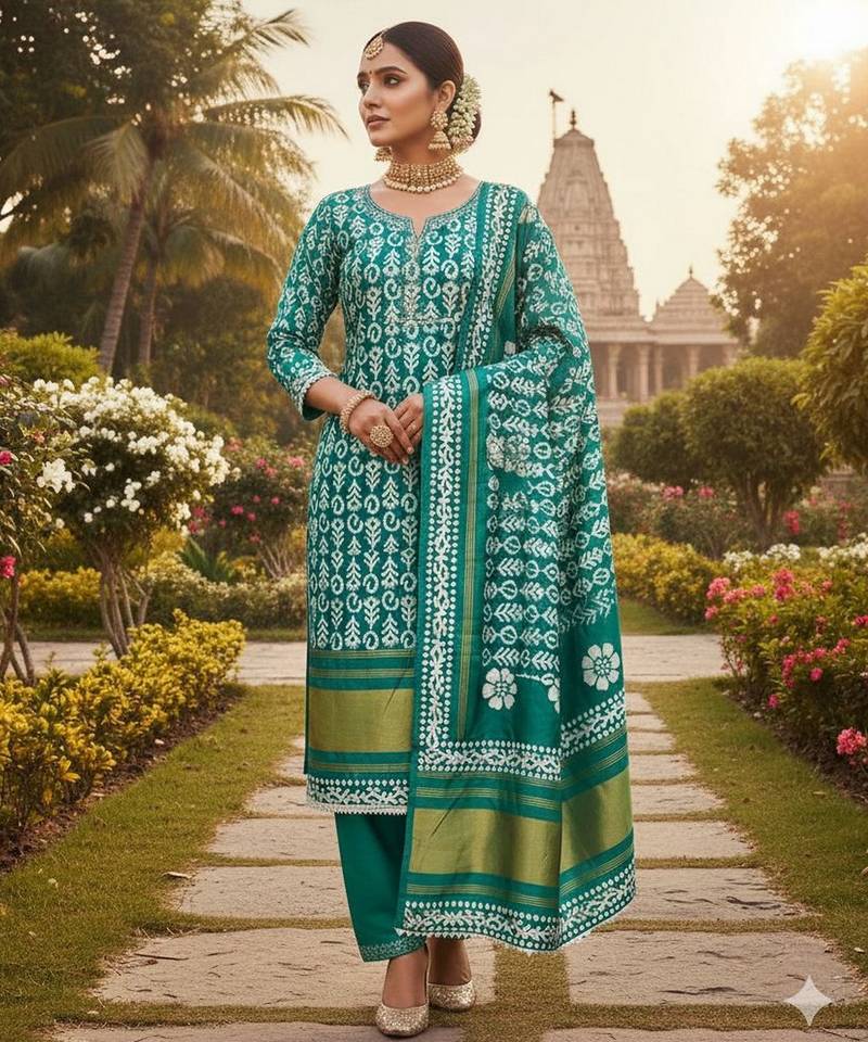 Grab These Suit in Fine Colored Pair With Bottom And Dupatta.These Top Are Gajji Silk And Dupatta Are Fabricated On Gajji Silk Pair With Santoon Bottom.Its Beautified With Woven Jari Patta Designer With Batik Printed.