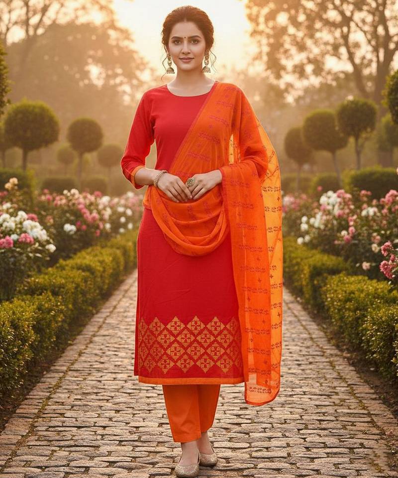 • Style : Salwar • Fabric : Chanderi • Color : Orange • Color : Orange Dupatta Details