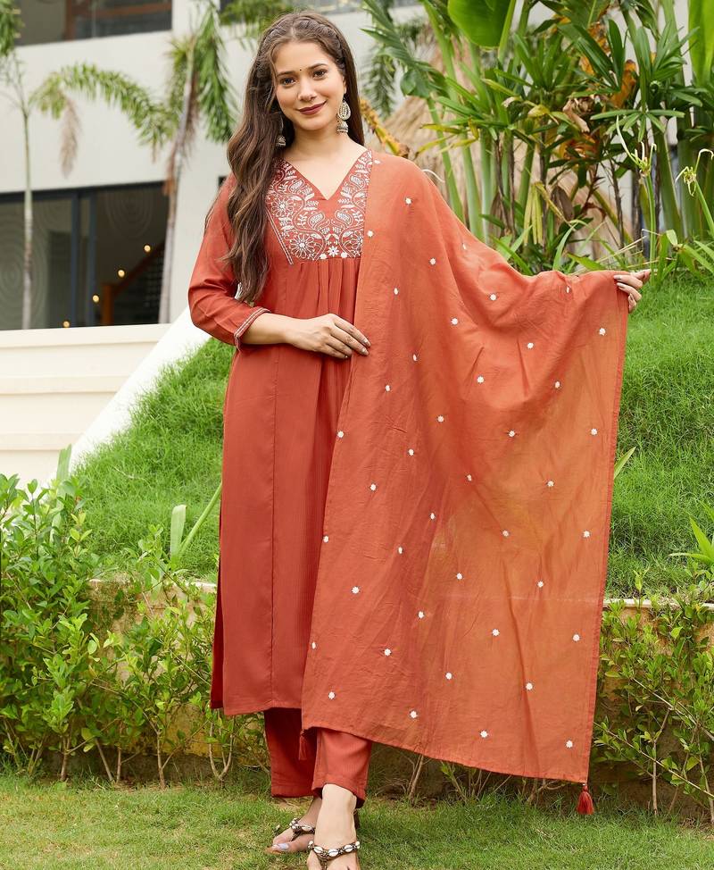 Rust Color Viscose Blend Fabric Designer Embroidered Fancy Kurta Set