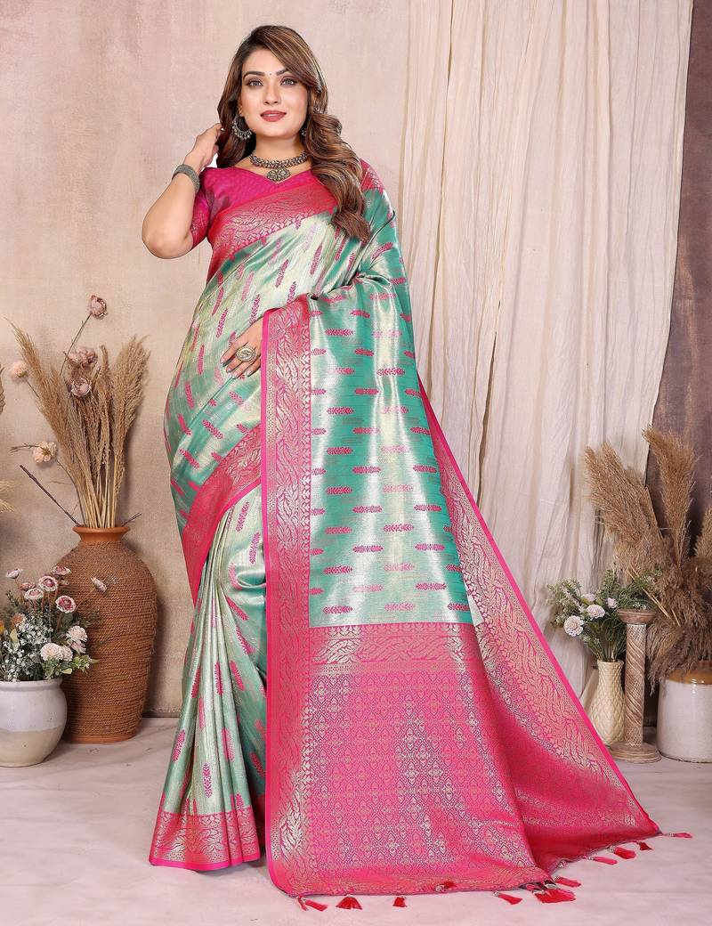 Sea Green Color Beautiful Banarasi Tissue Silk Blend Blend Rich Sophisticated Saree