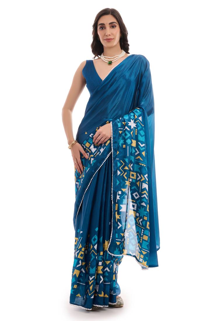 • Fabric Of : Chiffon • Color : Teal • Color : Teal Blouse Details