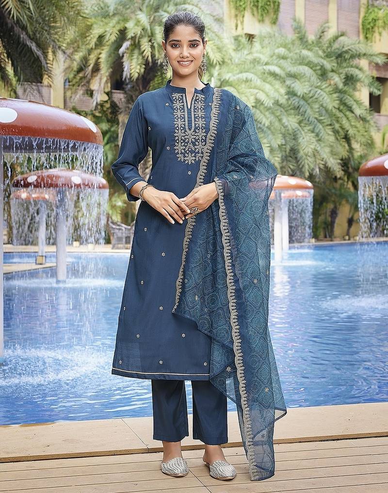 Attractive These Beautiful Party Wear Designer Readymade Suits.These Top And Bottom Are Viscose Chanderi And Dupatta is Fabricated On Organza.Its Beautified With Designer Embroidery Work,Printed Dupatta.