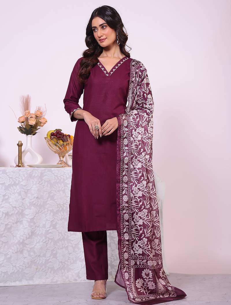 • Product Id : 4718153 • Package Details : 1 Kurta/1 Bottom/1 Dupatta • Type : Kurta Sets • Occasion : Festive • Fabric : Art Silk • Work : Printed • Type : Abstract Print • Look : Designer • Sleeve : Half Sleeve • Neck Style : Asymmetrical Neck Kameez • Color : Wine • Stitching : Stitched • Length : 40.0 • Side Slit : Yes Payments [+]