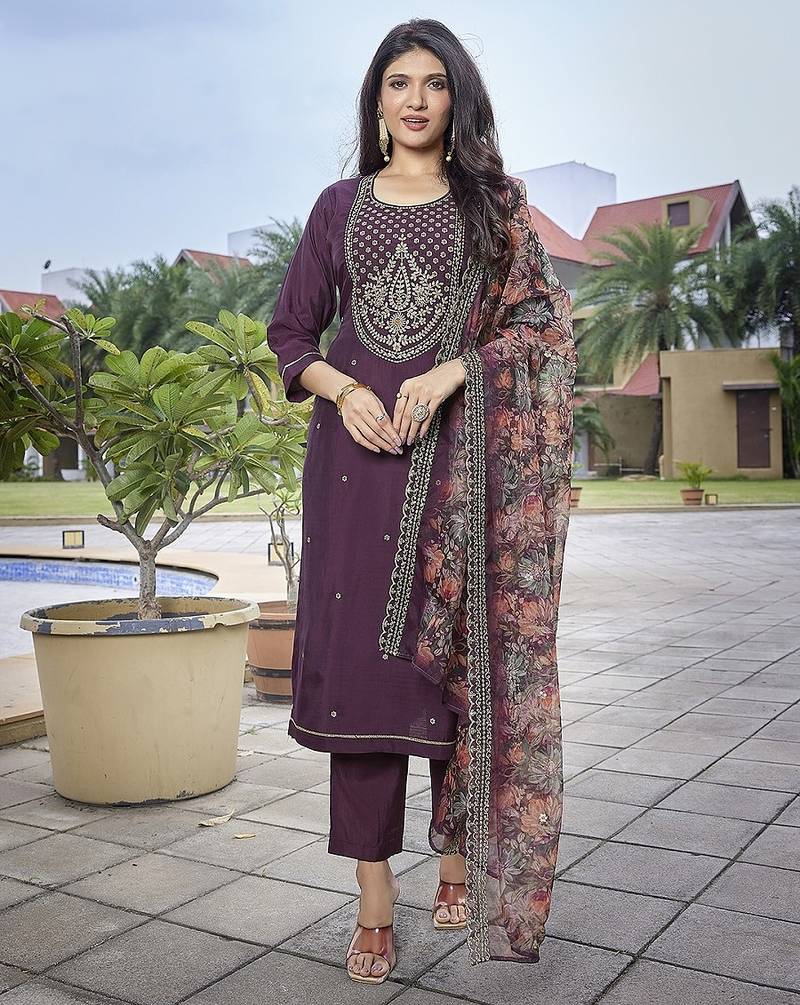 Wine Color Stylish Partywear Readymade Ethnic Suit