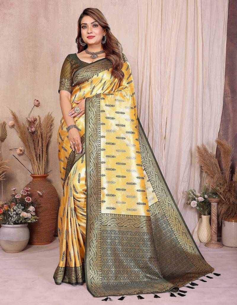 Yellow Color Beautiful Banarasi Tissue Silk Blend Blend Rich Sophisticated Saree