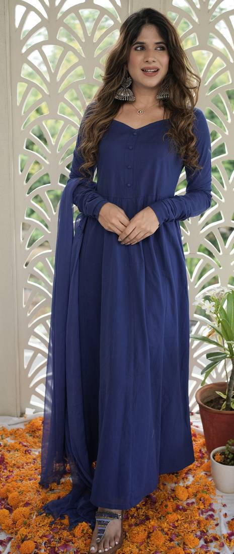 Its Solid Navy Blue Anarkali Kurta With Dupatta