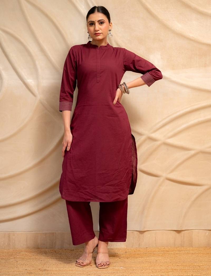 Refresh your ethnic wardrobe with this elegant maroon kurta set, designed for everyday comfort and a refined traditional look.