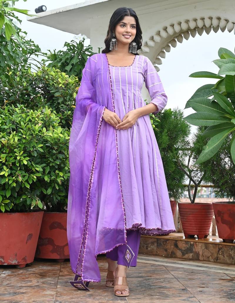 Quality - soft cotton women anarkali set, Fabric :cotton gotta, color :levender