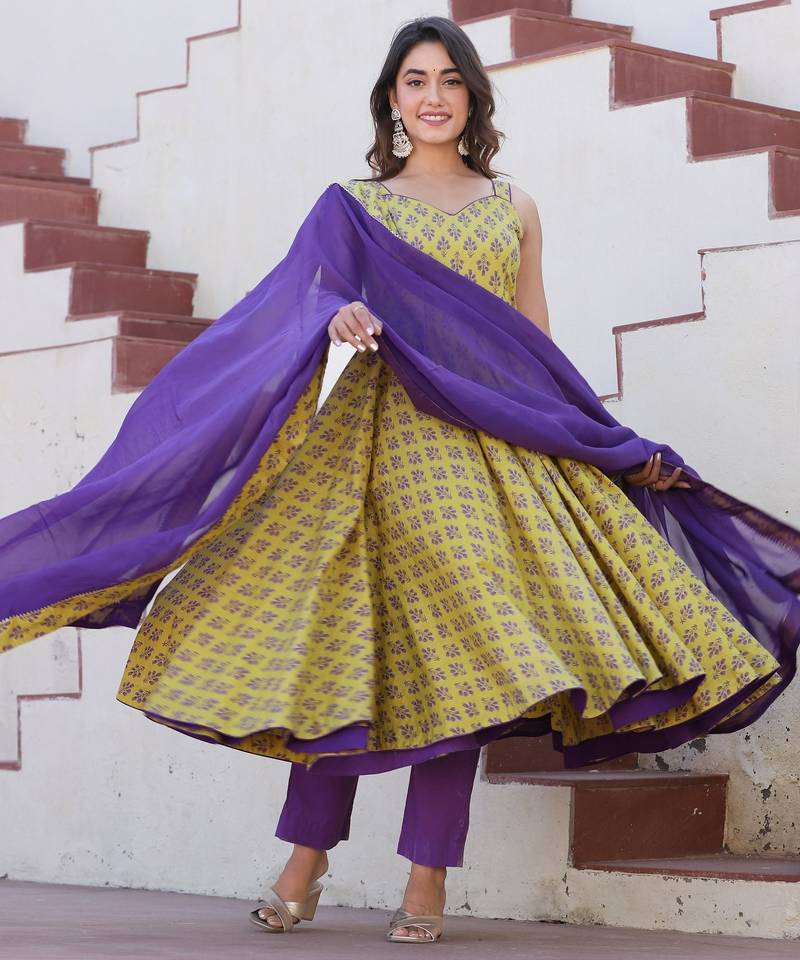 Quality --soft Cotton women anarkali, Fabric : cotton, color :yellow