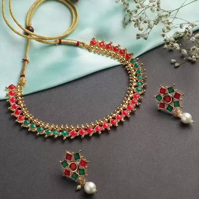 Fancy Colorful Choker Necklace Earrings Set For Women