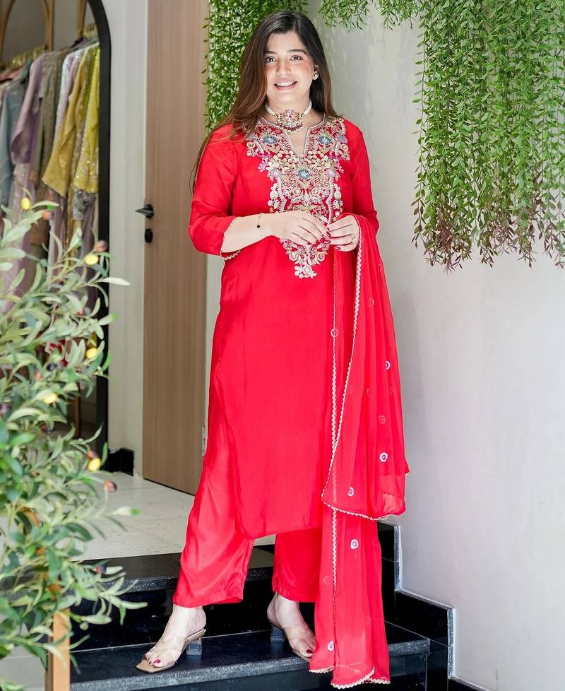 • Product Id : 4751433 • Package Details : 1 Kurta:1 Pant:1 Dupatta • Type : Kurta Sets • Region : Optimized For Luxury E Commerce Platforms In India, Usa, Uk, Canada, And The Uae, Targeting High End Festive And Wedding Guest Apparel. • Work : Embroidered • Type : Sequins Work • Look : Fashion • Sleeve : Quarter Sleeve • Neck Style : V Neck • Color : Rani Pink • Fabric : Pure Silk • Stitching : Stitched • Length : 42.0 • Side Slit : Yes General - Color and Texture may have slight variation. This happens because of photography.