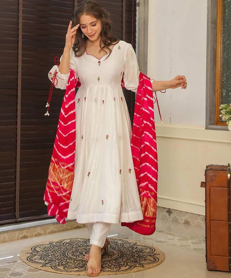 • Product Id : 4751450 • Package Details : 1 Kurta:1 Pant:1 Dupatta • Type : Kurta Sets • Region : Optimized For Luxury E Commerce Platforms In India, Usa, Uk, Canada, And The Uae, Targeting High End Festive And Wedding Guest Apparel. • Work : Embroidered • Type : Sequins Work • Look : Fashion • Sleeve : Quarter Sleeve • Color : White • Fabric : Chanderi Silk • Stitching : Stitched • Neck Style : Stylised Neck • Length : 42.0 General - Color and Texture may have slight variation. This happens because of photography.