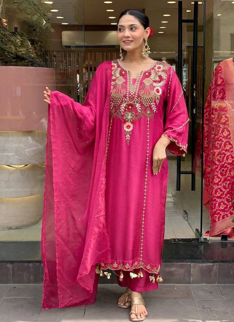 • Product Id : 4751439 • Package Details : 1 Kurta:1 Pant:1 Dupatta • Type : Kurta Sets • Region : Optimized For Luxury E Commerce Platforms In India, Usa, Uk, Canada, And The Uae, Targeting High End Festive And Wedding Guest Apparel. • Fabric : Chanderi • Work : Embroidered • Type : Sequins Work • Look : Fashion • Sleeve : Quarter Sleeve • Neck Style : V Neck • Color : Pink • Stitching : Stitched • Length : 42.0 • Side Slit : Yes General - Color and Texture may have slight variation. This happens because of photography.