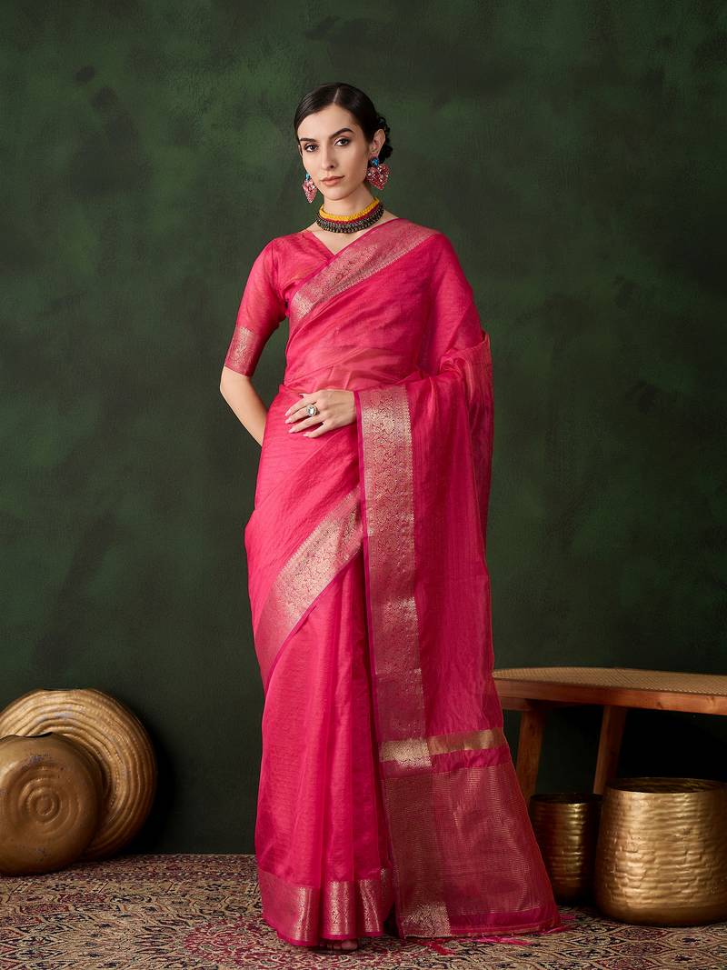 Pink Khadi Organza Jacquard Saree